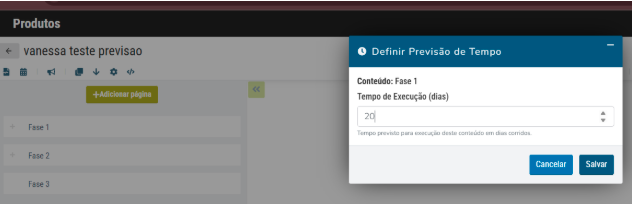 Pergunta: Se eu configurar manualmente uma previsão de 20 dias em uma Fase e, dentro dela, configurar uma Etapa para 15 dias, como será o comportamento do prazo total da Fase?