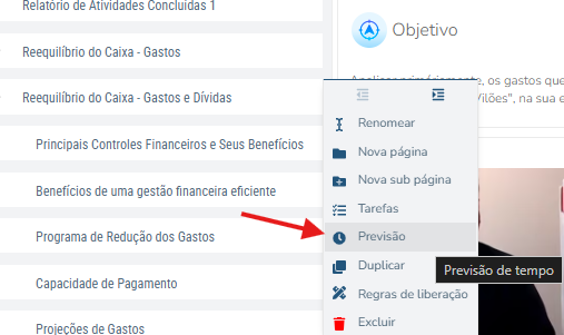 • Você pode incluir previsões nas fases, etapas e tarefas: